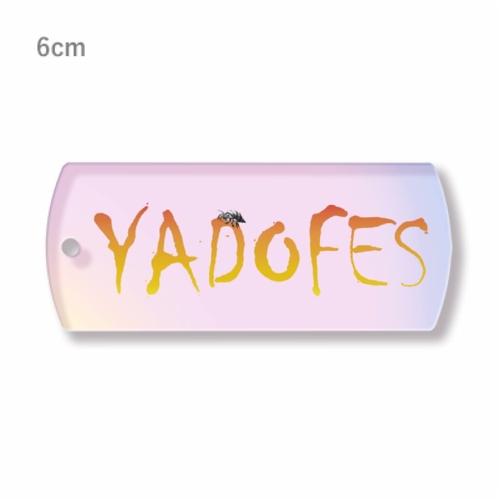「ヤドフェス」のロゴをあしらった、キラリと光るオーロラアクリルタグキーホルダーが登場!